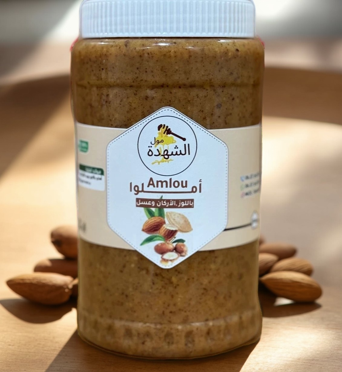 أملو فاخر محضر من مكونات طبيعية 100%: لوز مهرمش بعناية، زيت أرغان نقي ومعصور على البارد، وعسل الليمون أصلي عالي الجودة. تركيبة غذائية غنية تجمع بين الطعم الأصيل والقيمة الصحية، مثالي للإفطار أو كوجبة خفيفة مغذية.